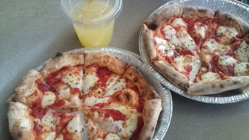 写真はその場で焼きあげてくれる石釜ピザ!
